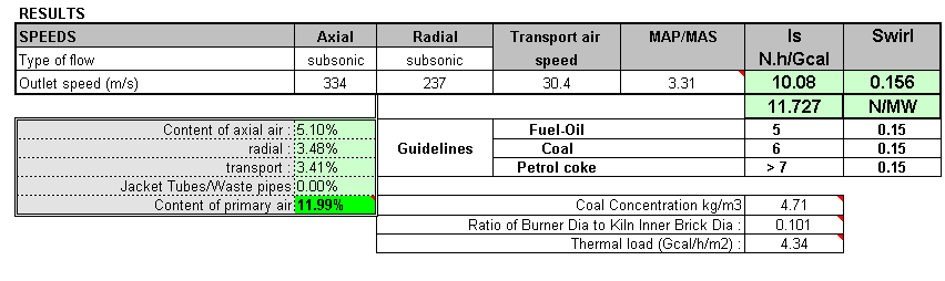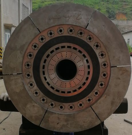 新改造的燃燒器頭部為拉法基歐洲專供機型,此次定項設計RS項目窯頭燃燒器頭部尺寸改造,通過軸流風動能增加軸流風的推力率,以旋流風模式重新設計并修正氣動角度,燃燒器頭部改造后的直接效果,促使更大范圍的高溫煙氣回流及內部氣流的交換速率提升,提高著火能力,強化煅燒,有利于強度,密度,能耗,產量等多方面的優化改善,燃燒器頭部結構也得到優化大幅延長使用周期。