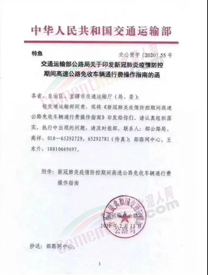 2月15日,交通運輸部正式發布通知:2月17日零時起至疫情防控工作結束,全國收費公路免收車輛通行費。根據最新下發操作指南,目前暫定免費時間是到6月30日。高速公路免收車輛通行費政策的出臺,對疫情期間復工困難的廣大企業來說是一個利好的消息,有助于降低企業運輸成本,減少資金壓力。同時對水泥價格的穩定形成了沖擊。