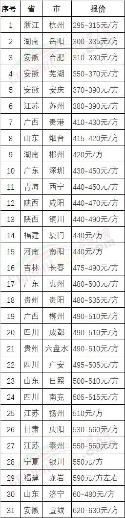 3月18日P.O42.5散裝水泥報價常德地區360~380元/噸。邵陽地區報價330-350元/噸。郴州地區報價350-380元/噸左右。