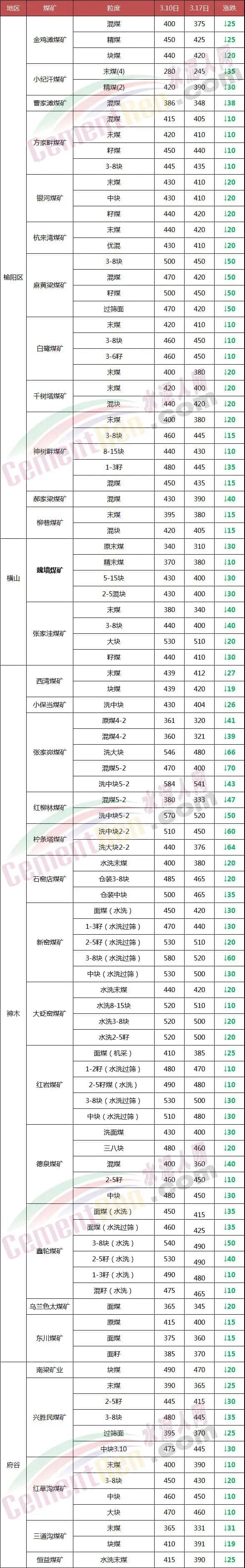 煤碳方面:受各方面因素的影響,全國煤價格也出現了不同程度的下滑,3月18日,榆林地區部分煤炭價格出現了不同程度的下滑。