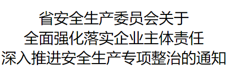 為深入貫徹落實國家領導人關于安全生產重要論述和對江蘇工作重要指示批示精神,認真落實黨中央、國務院決策部署和國務院督導組工作要求,全面強化落實企業安全生產主體責任,切實推動安全生產專項整治和危化品安全綜合治理取得實效,從根本上預防和壓降生產安全事故,經省委、省政府同意,現制定《企業落實安全生產主體責任重點事項清單》 (以下簡稱《清單》),并就落實《清單》工作提出如下要求: