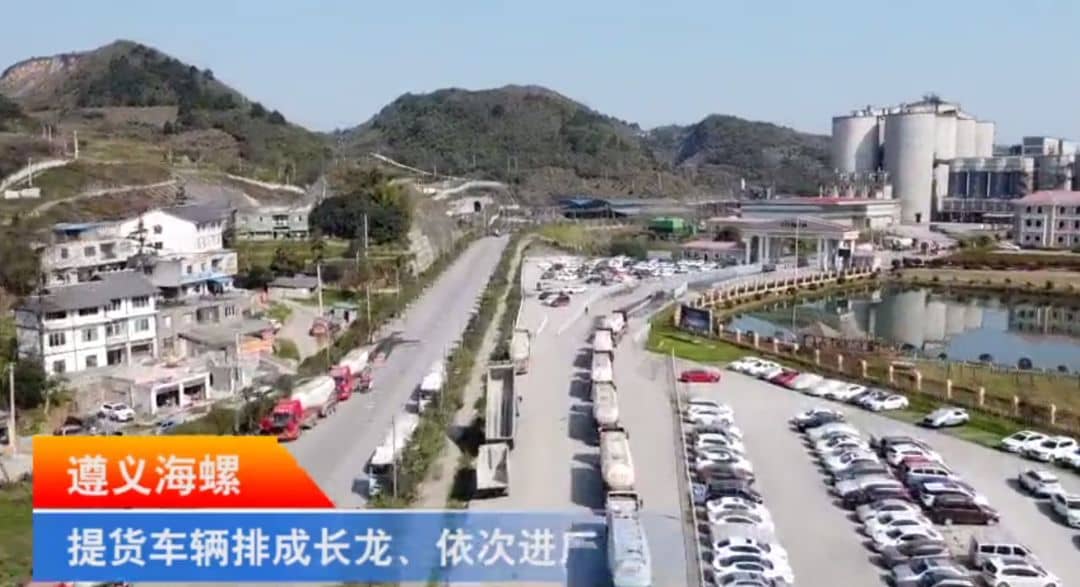 遵義海螺提貨車輛排成長(zhǎng)龍,依次進(jìn)廠