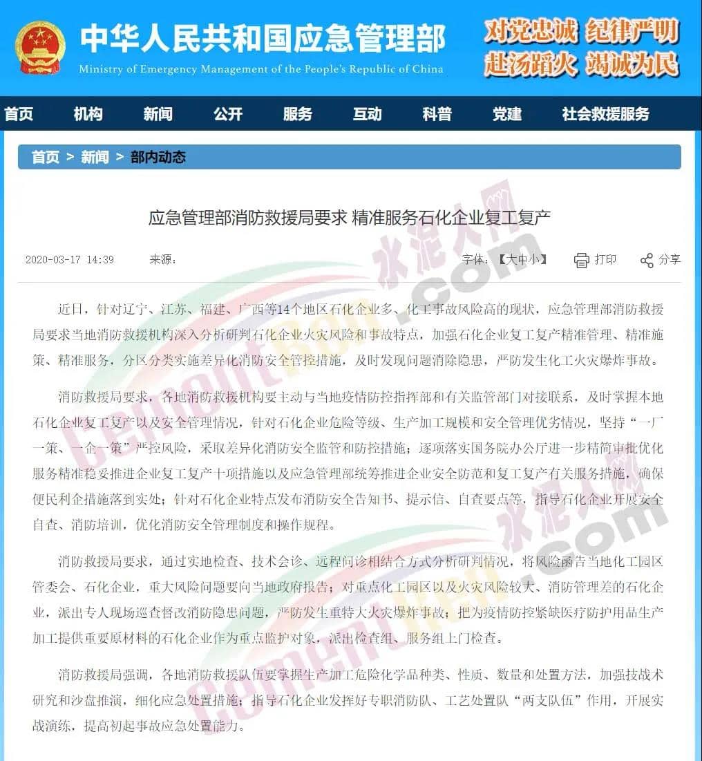 江蘇、北京、山西等地也積極響應要求,推動危化品生產企業復工復產工作,以及企業安全風險和事故隱患排查整治等各項工作,堅決防范遏制各類事故發生。去年“3.21”響水爆炸事故的影響仍未散去,我們更應當引以為戒,吸取事故教訓,時刻保持警惕,牢記紅線,守住安全。