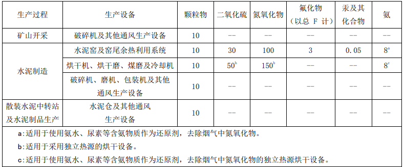 河北省出臺的《水泥工業(yè)大氣污染物超低排放標(biāo)準(zhǔn)》,嚴(yán)格了顆粒物、二氧化硫、氮氧化物的排放限值,分別為10mg/m3、30mg/m3、100mg/m3;對烘干機(jī)、烘干磨、煤磨及冷卻機(jī)系統(tǒng)的顆粒物、二氧化硫、氮氧化物排放限值分別確定為10mg/m3、50mg/m3、150mg/m3。與現(xiàn)行國家標(biāo)準(zhǔn)以及其他省份標(biāo)準(zhǔn)相比,達(dá)到了先進(jìn)水平。對烘干機(jī)、烘干磨、煤磨及冷卻機(jī)系統(tǒng),在排放限值基礎(chǔ)上增加了脫硝系統(tǒng)氨逃逸控制指標(biāo),排放限值為8mg/m3。