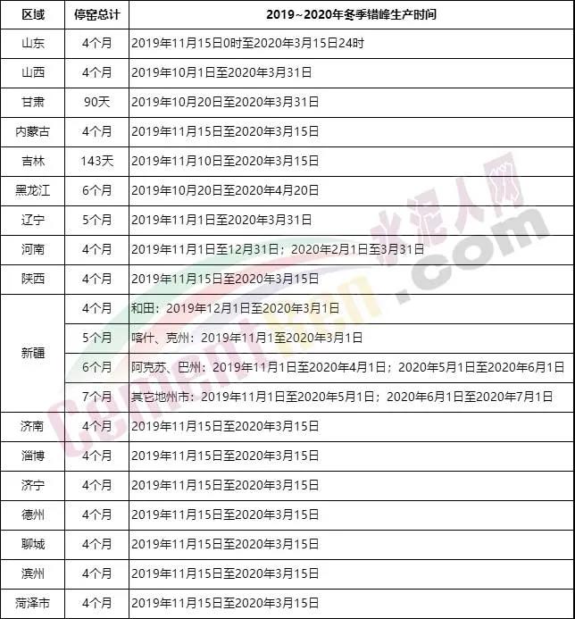 注:以上數(shù)據(jù)來源于各省工信廳、環(huán)保廳僅供參考。如與實際停產(chǎn)時間不符,請以實際停產(chǎn)時間為準(zhǔn)!