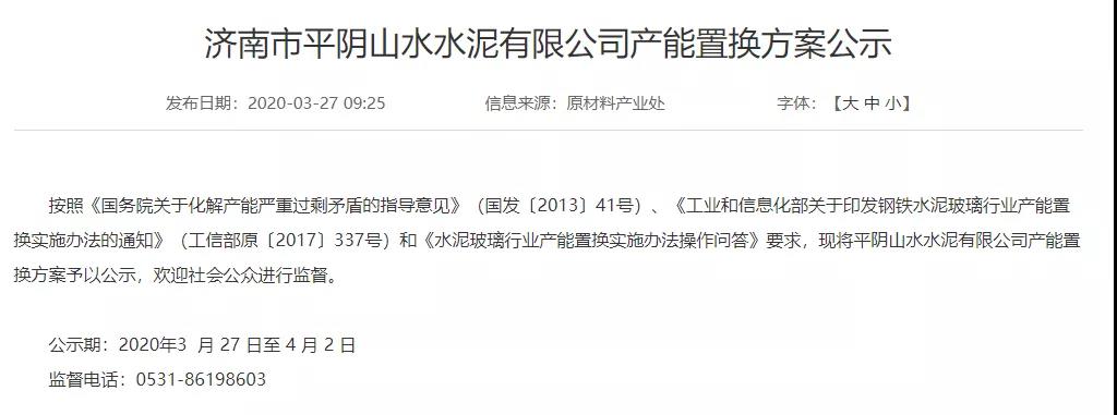 日前,山東省工信廳發布了兩條產能置換公示信息?!稘鲜衅疥?a href="http://www.tykjbj.com/tag/1929.html" target="_blank" class="keylink">山水水泥有限公司產能置換方案公示》及《棗莊市滕州東郭水泥有限公司產能置換方案公示》。