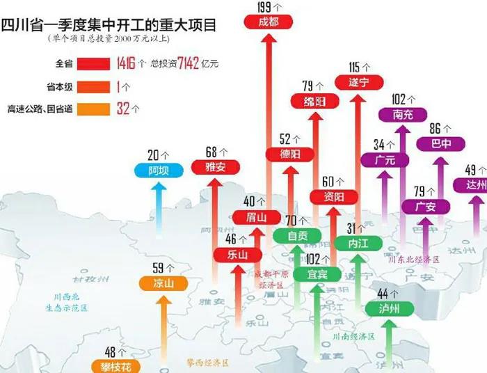 此次集中開工的1416個(gè)重大項(xiàng)目,涉及基礎(chǔ)設(shè)施、產(chǎn)業(yè)發(fā)展、民生及社會事業(yè)等領(lǐng)域,總投資達(dá)7142億元,民間投資占全部項(xiàng)目總投資額的50%以上。這批項(xiàng)目的開工建設(shè),將進(jìn)一步擴(kuò)大四川省有效投資,為有效應(yīng)對疫情對四川省經(jīng)濟(jì)社會發(fā)展的影響,實(shí)現(xiàn)全年經(jīng)濟(jì)社會發(fā)展預(yù)期目標(biāo)提供有力支撐。