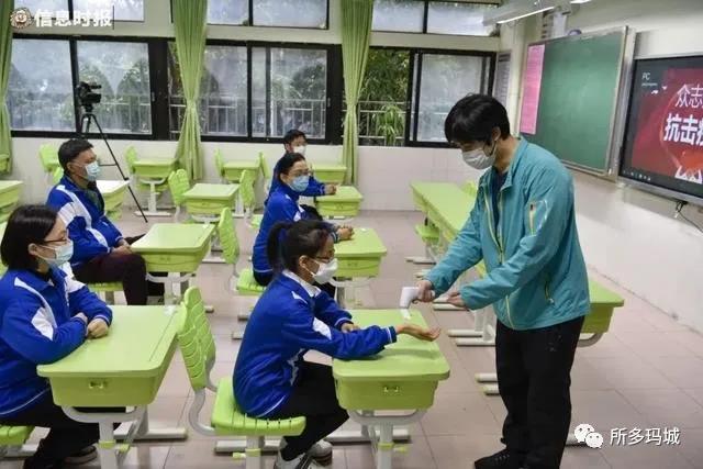 同時要求所有人員必須佩戴好口罩才能進入校園,進入學校立刻進行洗手消毒。