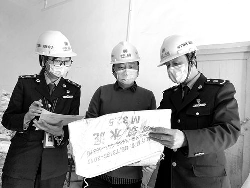 近日,浙江省湖州市南潯區市場監管局練市分局開展以水泥生產企業為重點檢查對象的產品質量安全專項檢查。執法人員通過查看企業資質證照、原輔材料查驗資料、生產記錄、產品出廠檢驗記錄、檢驗設備檢定等情況,檢查企業落實原材料進廠把關、按標準生產、出廠檢驗等制度情況。圖為執法人員對水泥外包裝袋的標簽標示等信息進行檢查。