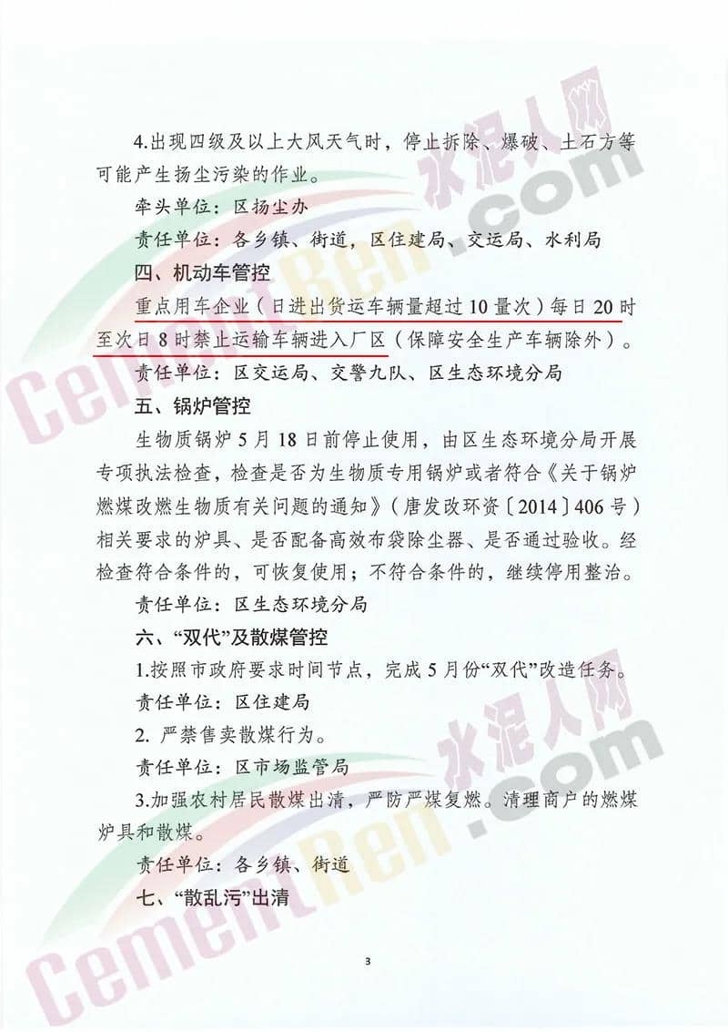據水泥人網了解,應此前唐山市豐潤區生態環境保護工作領導小組辦公室文件要求每日20時至次日8時禁止運輸車輛進入廠區內,并未停發水泥。部分企業因庫容量較小,為保供重點客戶對部分經銷商客戶暫停供應。
