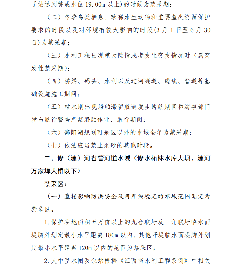 5、修河國家濕地公園范圍內可采區3月~6月水生生物繁殖期;