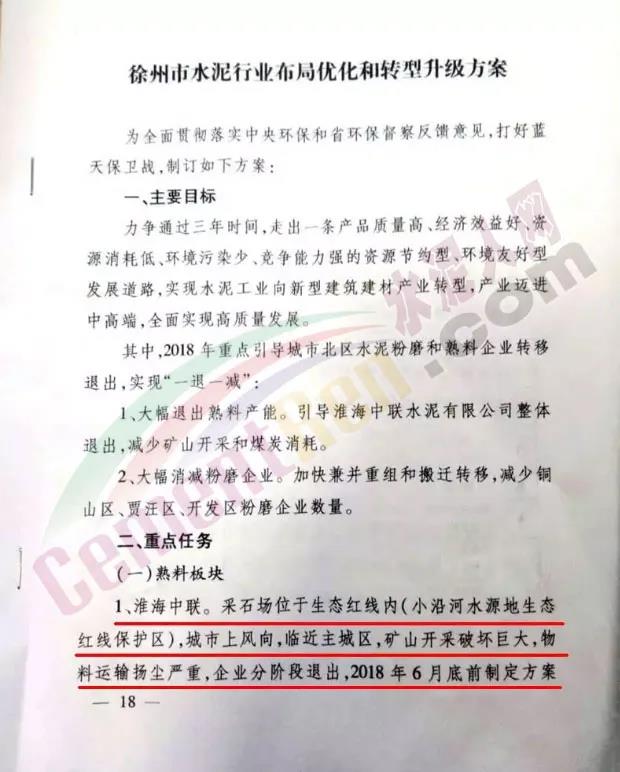 是科學(xué)有序退出還是“一刀切”關(guān)停引爭(zhēng)議,1100多名員工或失業(yè)此前江蘇徐州于2018年5月出臺(tái)《徐州市水泥行業(yè)布局優(yōu)化和轉(zhuǎn)型升級(jí)方案》要求徐州地區(qū)62家水泥廠于當(dāng)年6月30日前實(shí)行兩斷三清、停產(chǎn)、整改、拆除。要求淮海中聯(lián)分階段關(guān)停水泥業(yè)務(wù)。