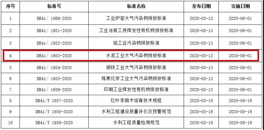 河南省市場監督管理局2020年29號公告批準發布新修訂的《工業爐窯大氣污染物排放標準》(DB41/1066-2020),自2020年6月1日起實施。