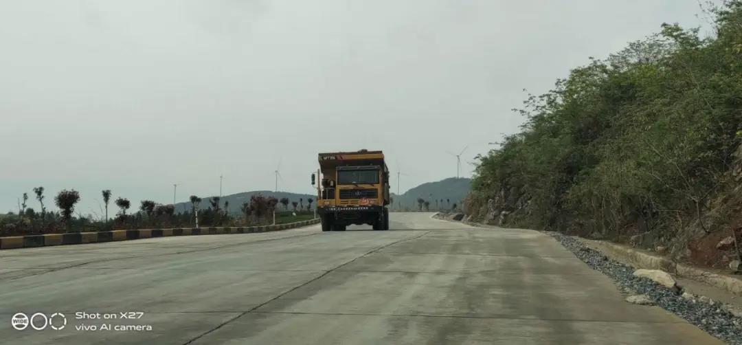 (1)道路設施。在與業主的積極溝通下,對礦山運礦道路全長約2.7公里進行路面硬化,道路寬8~9米,硬化厚度30cm,最大縱坡為8%,達到三級公路標準,并同步完善設置應急避險車道,彎道凹面鏡設置,道路護坡墻、截排水溝等設施,大大減少因路面坑洼不平產生的安全隱患,避免因路面寬度不足、無應急避險車道、彎道視野有限等因素發生運輸安全事故。