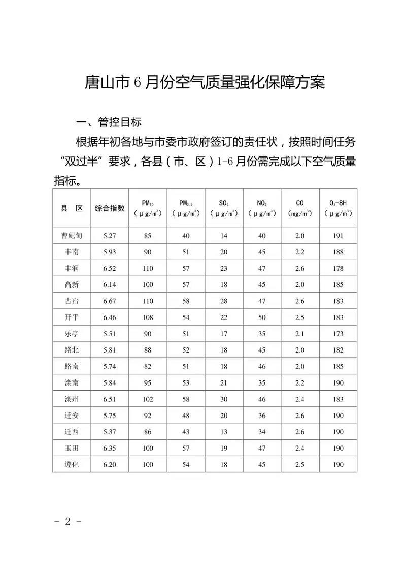 日前,河北省唐山市生態環境保護工作領導小組發布《唐山市6月份空氣質量強化保障方案》稱:根據年初各地與市委市政府簽訂的責任狀,按照時間任務“雙過半”要求,明確了各縣(市、區)1-6月份需完成的空氣質量指標。