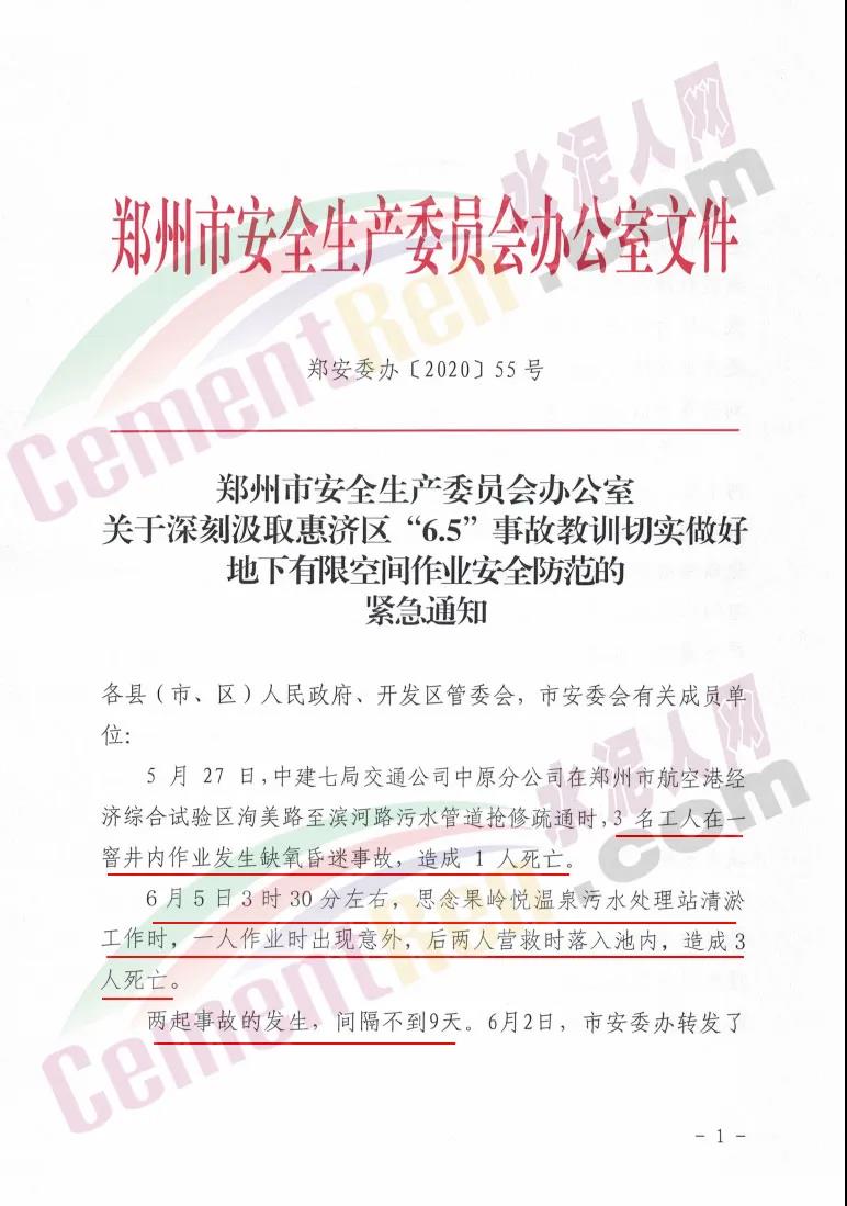 河南鄭州應(yīng)急管理局發(fā)布《關(guān)于深刻汲取惠濟(jì)區(qū)“6.5”事故教訓(xùn)切實(shí)做好地下有限空間作業(yè)安全防范的緊急通知》(鄭安委辦〔2020〕55號(hào))提到: