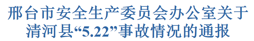 邢臺(tái)市安全生產(chǎn)委員會(huì)辦公室 于5月23日對(duì)該事故進(jìn)行了通報(bào)邢臺(tái)市安全生產(chǎn)委員會(huì)辦公室關(guān)于清河縣“5.22”事故情況的通報(bào)提到,清河縣這起較大事故暴露出我市一些地方和單位在堅(jiān)守安全生產(chǎn)紅線、底線方面存在較大差距。