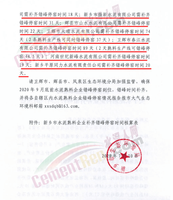 并請衛輝市、輝縣市、鳳泉區生態環境分局加強監管,確保2020年9月底前水泥熟料企業錯峰停窯到位,錯峰時間補齊。通知原文如下: