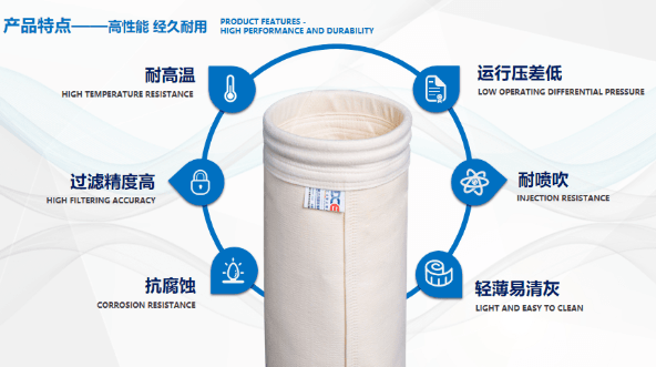其中,不乏諸多企業將化纖針刺氈濾料(比如芳綸、聚酰亞胺等)應用于窯頭,以過濾排放的含塵氣體。在完成超低排放的過程中,許多的企業也面臨著濾料使用壽命短導致的過濾效果差、不耐高溫、遇水遇潮后濾袋強力降低,以及過期廢舊物回收難等問題。要如何解決這些問題?