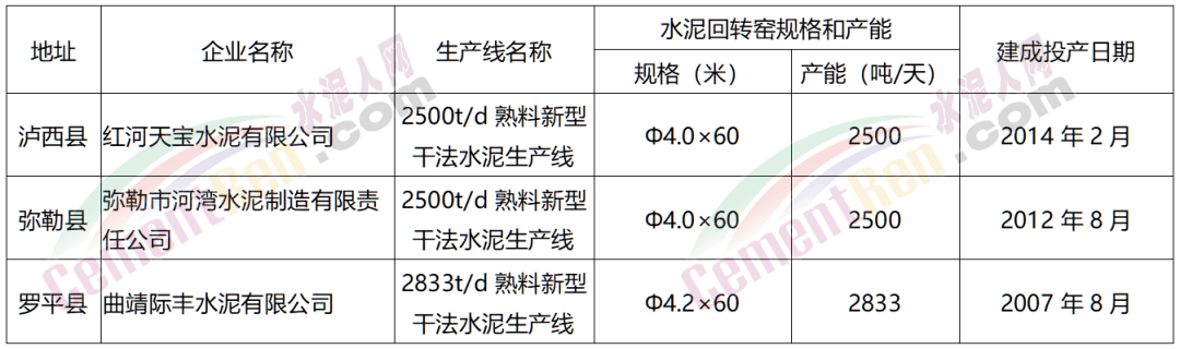 截止2020年8月末已建成投產(chǎn)112條熟料生產(chǎn)線,4條在建線2條新建線,合計118條熟料線 。由于市場競爭激烈,成本高的小規(guī)模生產(chǎn)線多處于停產(chǎn)狀態(tài),這也給了新建生產(chǎn)線置換產(chǎn)能以契機。以紅獅水泥和海螺水泥擬建生產(chǎn)線為例:紅河州彌勒紅獅擬建項目:通過退出紅河天寶、 彌勒河灣、曲靖際豐三條熟料生產(chǎn)線,通過1.25:1比例減量置換新建5200t/d熟料生產(chǎn)線。