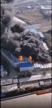 同日午間,浙江紹興一企業廠房發生火災,火焰貫穿整棟樓。