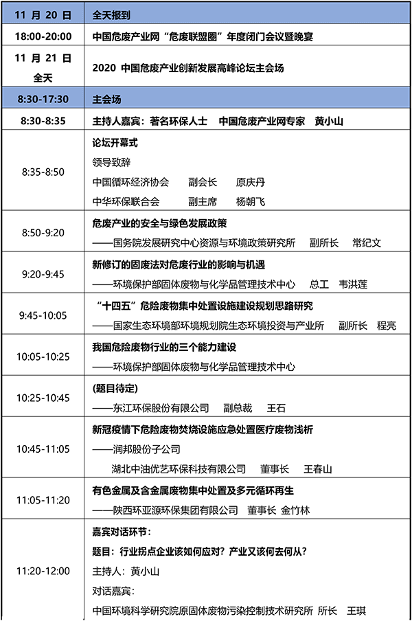 為規范危險廢物處置工程的建設和運行并提高危廢利用總體處置水平,控制環境風險,改善環境質量,助力推動建立“無廢城市”綜合管理制度和技術體系,推動完成“十四五”時期生態環境保護的總體目標,中國危廢產業網在成功舉辦三屆危廢高峰論壇的基礎上聯合相關部門將于2020年11月20日-22日在北京舉辦第四屆“中國危廢產業創新發展論壇暨危廢資源化與無害化處置研討會”。歡迎各單位選派或組織相關人員參加,現將論壇具體內容通知如下: