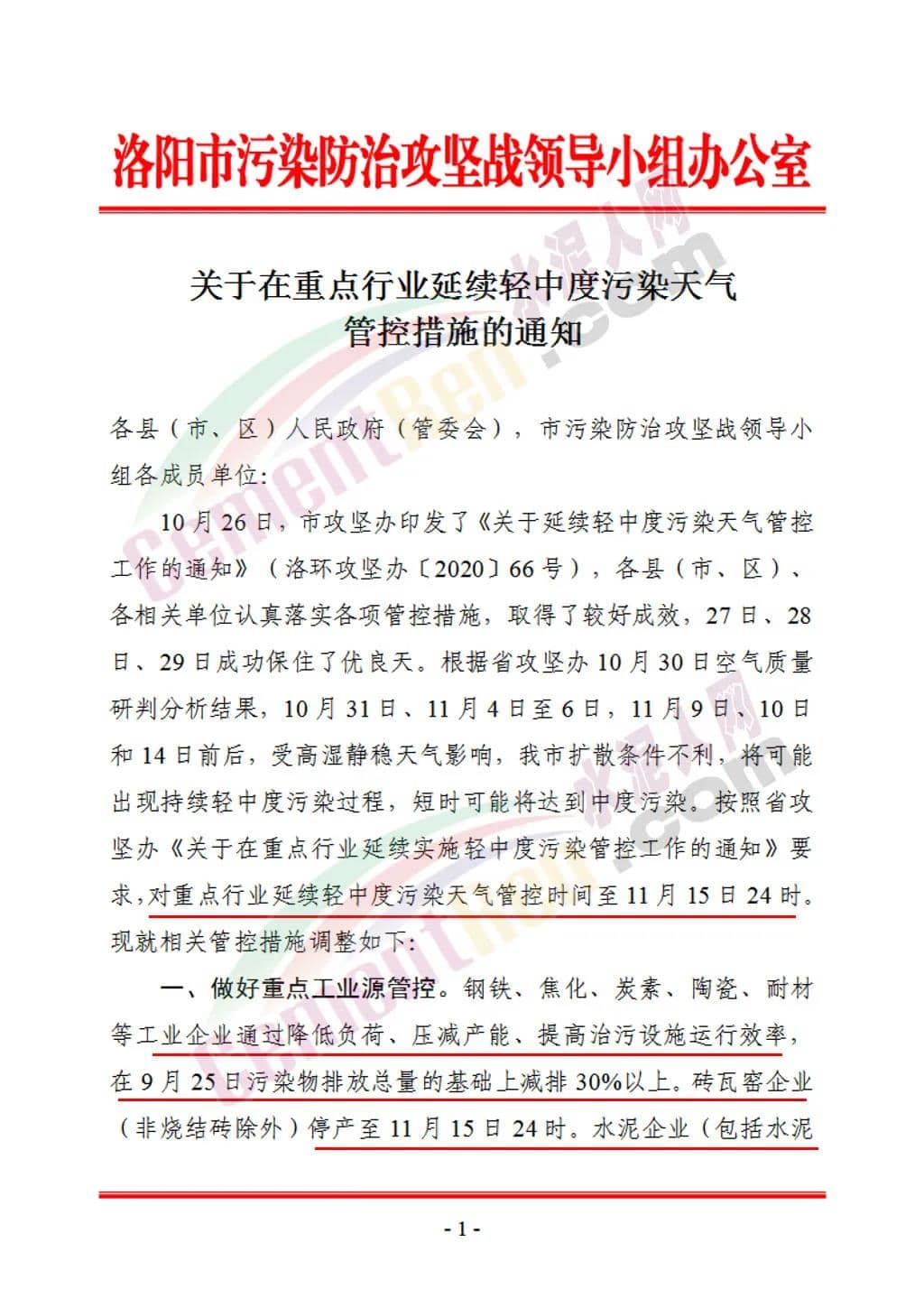 同期,河南省新鄉市、洛陽市等區域環保部門分別發布在重點行業延續輕中度污染天氣管控措施的通知。