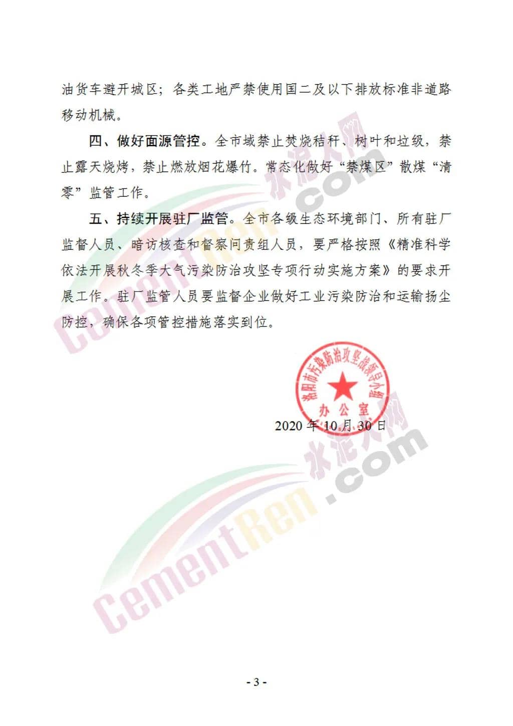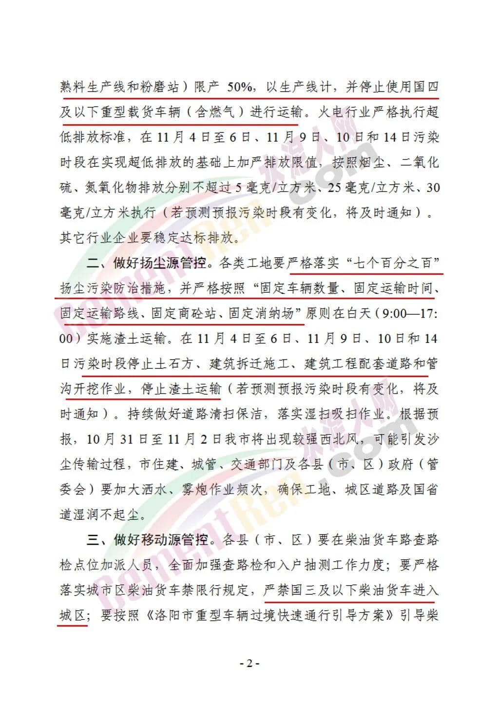 嚴格落實企業管控要求,水泥熟料、碳素、玻璃制品和陶瓷企業限產50%(含)以上(以生產線計,兩條生產線的停產一條,單條生產線的停產);水泥粉磨站及水泥制品、石灰窯、礦粉、鈣粉、商砕和瀝青攪拌站等所有建材行業全部停產(績效引領性企業除外);所有企業停止使用國四及以下重型載貨車輛(含燃氣)進行運輸。通知原文如下: