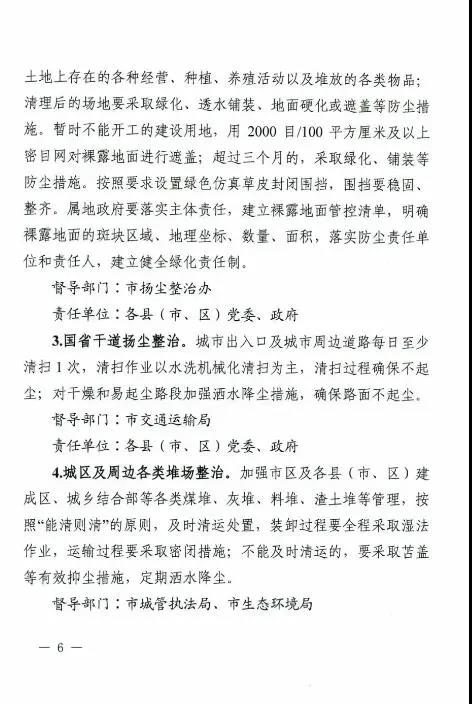 4.城區及周邊各類堆場整治。加強市區及各縣(市、區)建成區、城鄉結合部等各類煤堆、灰堆、料堆、渣土堆等管理,按照“能清則清''的原則,及時清運處置,裝卸過程要全程采取濕法作業,運輸過程要采取密閉措施;不能及時清運的,要采取苫蓋等有效抑塵措施,定期灑水降塵。