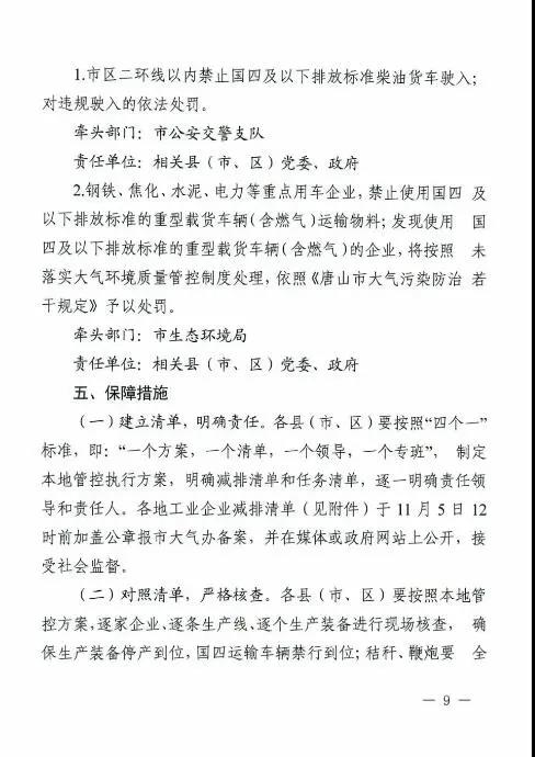 2.鋼鐵、焦化、水泥、電力等重點用車企業,禁止使用國四及以下排放標準的重型載貨車輛(含燃氣)運輸物料;發現使用國四及以下排放標準的重型載貨車輛(含燃氣)的企業,將按照未落實大氣環境質量管控制度處理,依照《唐山市大氣污染防治若干規定》予以處罰。