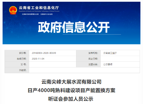 為貫徹落實《工業和信息化部辦公廳 國家發展改革委辦公廳關于嚴肅產能置換 嚴禁水泥平板玻璃行業新增產能的通知》(工信廳聯原〔2018〕57號)文件要求,依法依規從嚴審核項目產能置換方案,防止弄虛作假,消除新增產能隱患,云南省工業和信息化廳決定委托中國國際工程咨詢有限公司組織召開云南尖峰大展水泥有限公司日產4000噸熟料建設項目產能置換方案聽證會。按照《云南尖峰大展水泥有限公司日產4000噸熟料建設項目產能置換方案聽證會公告》參加人員構成及產生辦法,經過公開自愿報名、推薦和邀請等方式,產生了參加聽證會的相關人員?,F公示如下: