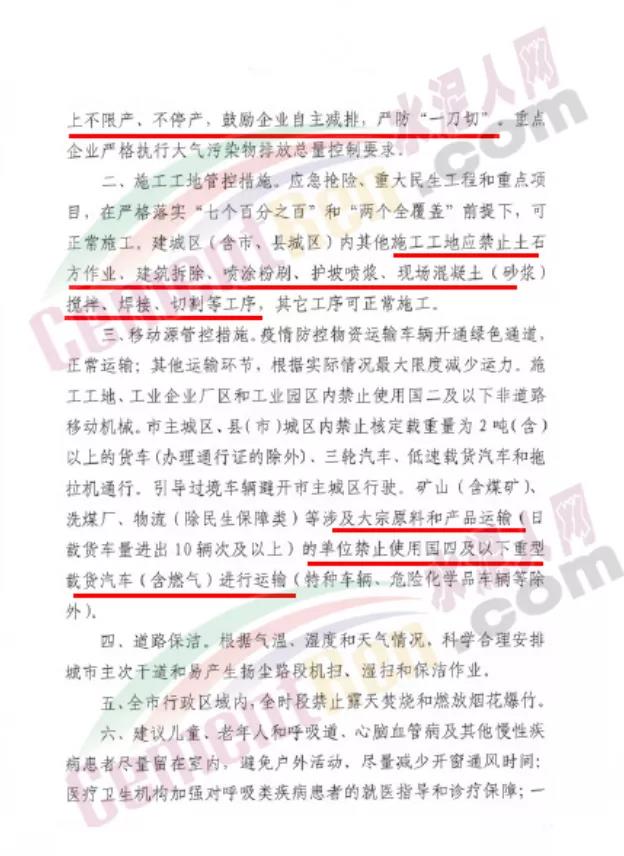 衡水市大氣污染防治工作領導小組辦公室發文:定于2020年11月9日8時啟動Ⅱ級應急響應,解除時間另行通知。工業企業嚴格按照《2020-2021年衡水市工業企業應急減排清單(報審版)》的清單中橙色預警減排措施執行。除應急搶險外,建成區停止所有施工工地的土石方作業(包括:停止土石方開挖、回填、場內倒運、摻拌石灰、混凝土剔鑿、改造、建筑工程配套道路和管溝開挖等作業)、建筑拆除、噴涂粉刷、護坡噴漿、混凝土攪拌等。