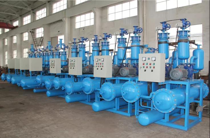 用于水泥行業余熱發系統的高效率抽真空裝置由前置冷卻過濾器、快速啟閉特制真空電動閥、高密封軟性閘門、高強度止回閥、高效率真空泵、冷卻油罐、油水分離器、集成一體化控制柜等組成。