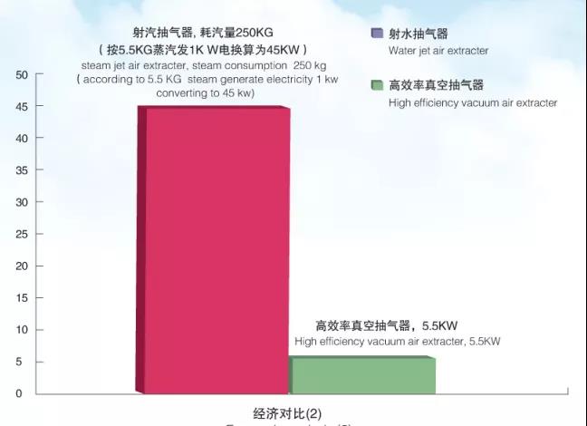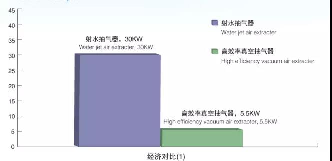 2、 高效率真空抽氣器極限真空度68mbar絕壓,額定抽氣量7.5kg/h,功率5.5KW 3、替代射水抽氣器可降低運行功率24KW,年可節電172800Kwh(300天"24小時24kw)