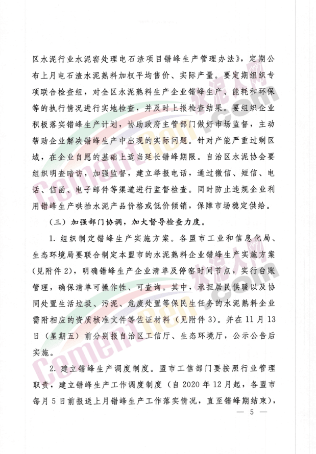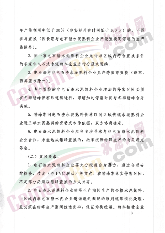 五、電石渣水泥熟料企業應當主動尋求與非電石渣水泥熟料企業合作,未能達成錯峰置換的,必須按照錯峰生產的有關規定停窯。