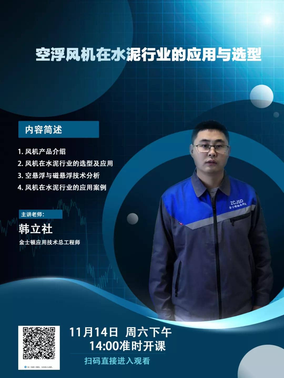 針對目前國內鼓風機行業的發展現狀,以及水泥企業在鼓風機選擇方面遇到的種種問題,國內首家空氣懸浮離心鼓風機生產制造商--石家莊金士頓軸承科技有限公司(以下簡稱“金士頓”)技術應用總工程師韓立社將通過線上直播的方式為大家一一解答。