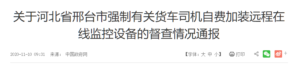 根據《河北省2020年機動車污染防治工作方案》要求,各地應統籌大氣污染防治資金等現有渠道,重點支持柴油貨車污染治理。督查發現,邢臺市生態環境保護局指定9家運營商開展安裝OBD業務,每套設備安裝費用從1600元到2650元不等,且收費管理不規范,收費后不提供發票。截至10月16日,上述9家運營商共為25247輛貨車安裝OBD,收費3961.54萬元。督查組認為,有關地方和部門為完成考核指標,隨意決策、任性作為,落實政策“變形走樣”,暴露出治理能力不足、法治思維欠缺的短板,增加了貨車司機負擔,違背了深化“放管服”改革優化營商環境的精神。針對督查發現問題,邢臺市政府高度重視、立行立改。已研究制定《國四及以上排放標準重型營運柴油貨車安裝OBD遠程在線監控終端補貼發放工作方案》,明確按照每輛貨車安裝OBD實際產生的費用予以全額補貼,已收費用退還車企車主。設立國四及以上排放標準營運柴油貨車工作聯合服務窗口,專門辦理相關補貼資金發放業務,確保11月30前發放完畢。國辦督查室將密切跟蹤有關工作進展情況,督促推動問題整改到位。