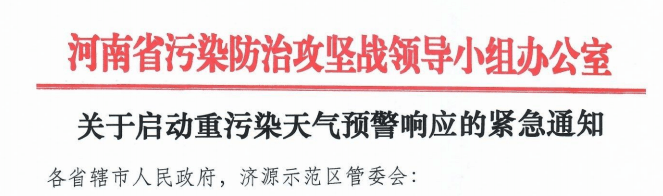 日前,河南省污染防治攻堅領導小組辦公室發布《關于啟動重污染天氣預警響應的緊急通知》,要求重污染天氣預警期間,各地重點加強對城市建成區及周邊排污企業的管控力度,對應停未停、應限不限、預警前故意抬高排放量及用電量,或借“出于安全考慮無法停下來” “設備調試、 檢修”名義規避管控的企業依法依規嚴格處理。省污染防治攻堅辦將每日通報各地管控情況,對管控措施落實不到位、督導不力的將進行通報批評,對由于管控不力,造成空氣質量嚴重下滑的地方,實施公開約談,依法依規處理。