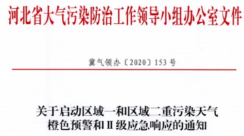 日前,河北省11個市轄區發布重污染天氣橙色預警,啟動Ⅱ級應急響應。要求相關城市及領導小組成員單位按照《河北省重污染天氣應急預案》要求,精心組織實施,加強督導檢查,確保各項應急響應措施落實到位。