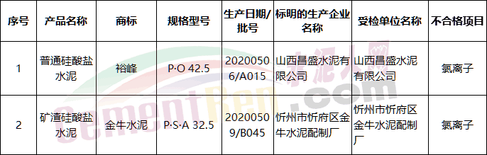 山西抽查兩個(gè)批次水泥氯離子不合格,涉及兩家水泥企業(yè)