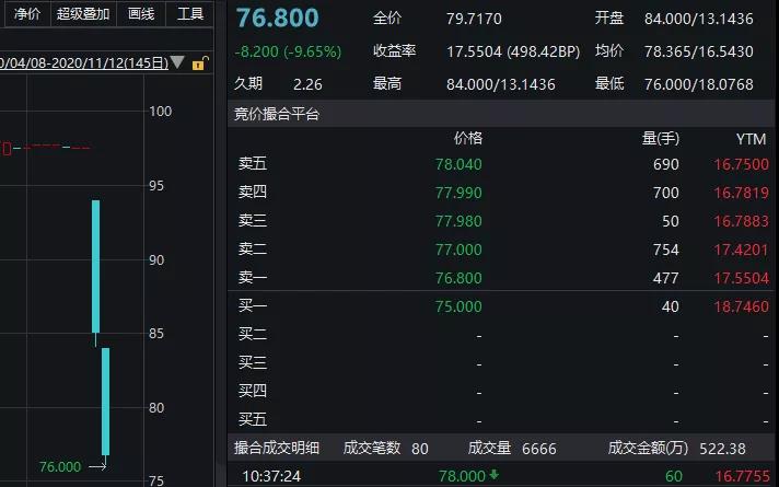總負債23億,唯一一期公開市場債券只有3個億,砸到80元,55%ytm。