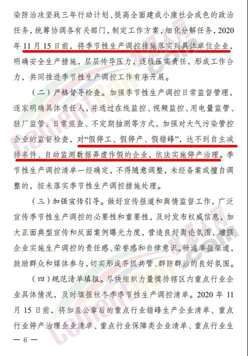 要求嚴格督導檢查。加強季節性生產調控日常監督管理, 逐家明確具體責任人,并通過在線監控、視頻監控、用電量監管、駐廠監管、日常巡查、不定期抽測等方式,加強對大氣污染管控企業的監督檢查,對“假停工、假停產、假錯峰”,達不到自主減排條件、自動監測數據弄虛作假的企業,依法實施停產治理。