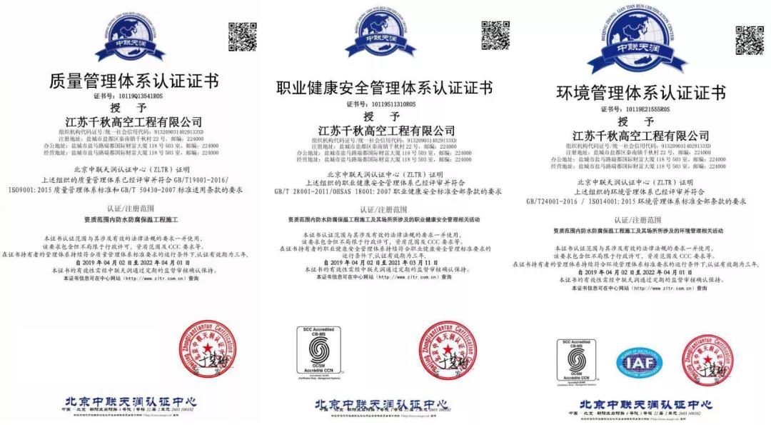 事故猛如虎,如海螺、中材、中聯(lián)、山水、天瑞等大型集團在選擇外委清庫企業(yè)時不僅要求資質齊全,還要求企業(yè)員工人具有執(zhí)業(yè)資格。水泥人網工作人員在市場調研過程中,了解到一家具有二十年安全清庫經驗的施工企業(yè)。相關操作人員不僅有著豐富的水泥清庫的經驗,還擁有《質量管理體系認證證書》、《職業(yè)健康安全管理體系認證證書》、《環(huán)境管理體系認證證書》等資質認證,并且作業(yè)人員一律經省安全生產監(jiān)督管理局考核,并持有《特種作業(yè)操作證》,這家公司就是江蘇千秋高空工程有限公司(以下簡稱“江蘇千秋公司”)。