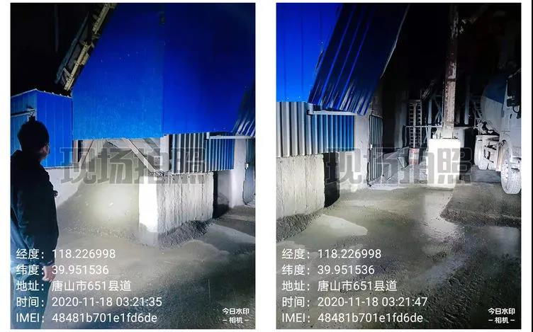 豐潤區生態環境分局領導班子成員高占峰副局長帶隊夜查砼業商砼,現場檢查時該廠未生產,料庫內有少量物料溢出大門無法密閉,責令立行立改;廠區內有兩輛非移動道路機械(鏟車)未進行備案,責令限期整改。