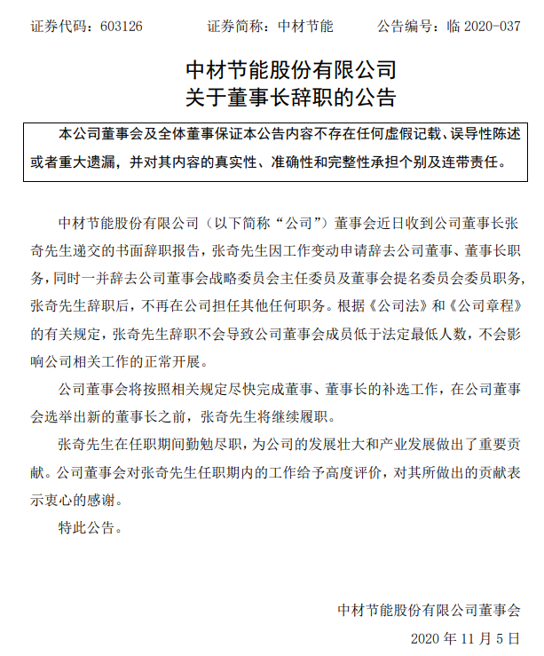 日前,中材節能發布公告稱,公司高管發生人事變動。具體事項如下: