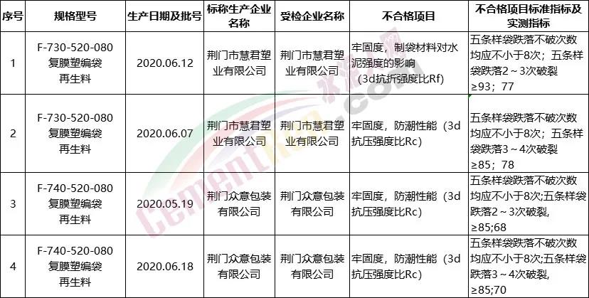 通報!又一批水泥包裝袋質量不合格!(附名單)