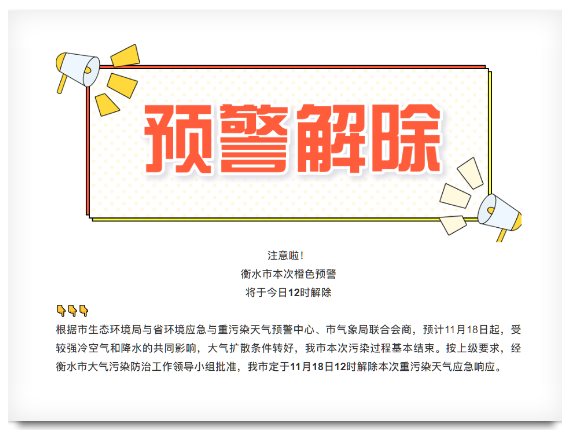 關(guān)于解除我市重污染天氣預(yù)警響應(yīng)的通知