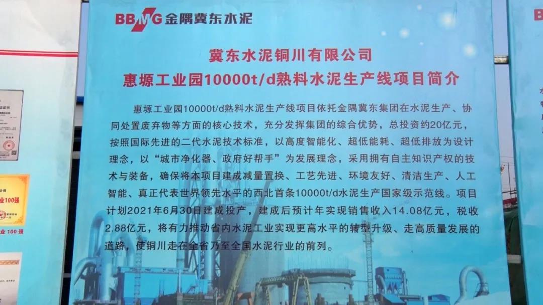冀東水泥把國家“一五”期間建設的陜西省耀縣水泥廠舊址的4條水泥生產線遷建到惠塬工業園區,建設一條日產熟料水泥1萬噸的生產線,項目總投資約20億元,目前已經完成投資9億多元,計劃明年6月底建成投產,屆時將打造國際一流、國內領先、西北首條日產萬噸,超低能耗、超低排放的熟料水泥國家級示范生產線。建成后預計年實現銷售收入14.08億元,稅收2.88億元。