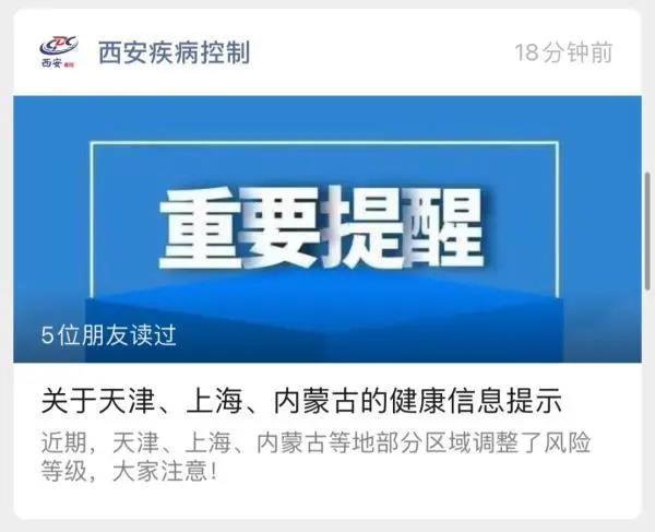 西安疾病控制中心再次發布健康提示,11月7日以來,天津市濱海新區東疆港區(含瞰海軒小區)、漢沽街、中心漁港冷鏈物流區A區和B區;上海市浦東新區祝橋鎮營前村、新生小區、周浦鎮明天華城小區、張江鎮順和路126弄小區的來返人員;內蒙古呼倫貝爾市滿州里市東山街道、北區街道的來返人員,請主動向所在社區報備相關活動情況,配合各區縣(開發區)疫情防控指揮部落實集中隔離等疫情防控措施,在管控當天和第13天各進行一次核酸檢測。