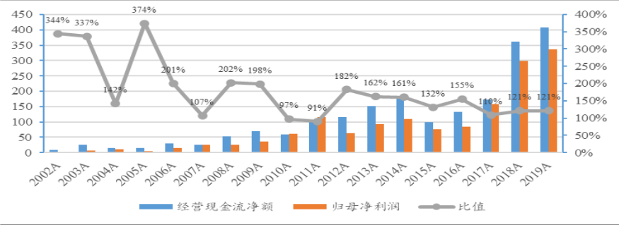 2016 年至今良好的利潤(rùn)和現(xiàn)金流使海螺水泥資產(chǎn)負(fù)債表的極大修復(fù),資產(chǎn)負(fù)債率值下降到 20%的水平;同時(shí)海螺水泥分紅相對(duì)不高,致使凈資產(chǎn)累計(jì),在凈利潤(rùn)難以繼續(xù)大幅增長(zhǎng)的情況下凈資產(chǎn)收益率水平提升有一定壓力。上市以來(lái)海螺水泥礦山資源優(yōu)勢(shì)、銷(xiāo)售成本優(yōu)勢(shì)提供優(yōu)異的現(xiàn)金流,支撐海螺水泥資本開(kāi)支。可以看到在整個(gè)產(chǎn)能擴(kuò)張階段主要依靠經(jīng)營(yíng)凈現(xiàn)金流支撐,股權(quán)融資和債券融資數(shù)額均較少。海螺水泥對(duì)下游商混、渠道市場(chǎng)議價(jià)能力較強(qiáng)也能在現(xiàn)金流中反應(yīng)。資產(chǎn)負(fù)債率方面,上市之初產(chǎn)能快速擴(kuò)張致使資產(chǎn)負(fù)債率快速上升,2007-2008 年的股權(quán)融資 156 億元使資產(chǎn)負(fù)債率從 60%以上降至 40%,2011—2013 年發(fā)行企業(yè)債并購(gòu)產(chǎn)能使資產(chǎn)負(fù)債率有所上升,而后隨著資本開(kāi)支減少、利潤(rùn)增長(zhǎng),負(fù)債率快速下降 20%,大幅優(yōu)于行業(yè)其他公司和絕大部分其他周期性行業(yè)龍頭公司。海螺水泥良好資產(chǎn)負(fù)債表和儲(chǔ)備的大量現(xiàn)金賦予企業(yè)較強(qiáng)風(fēng)險(xiǎn)抵御能力,并能在新增產(chǎn)能受禁的情況下借機(jī)并購(gòu)?fù)卣巩a(chǎn)能、進(jìn)入其他行業(yè)。根據(jù)我們預(yù)測(cè),到 2020 年底海螺水泥現(xiàn)金和理財(cái)產(chǎn)品總額將達(dá)到 900 億元。近幾年現(xiàn)金凈流額如圖3所示。